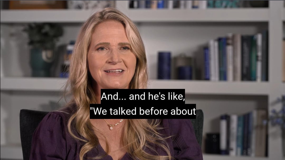 The story has always been that Kody kissed Robyn before their wedding because Christine told him to. It had been awkward for them kissing for the first time at the ceremony itself. But I had assumed that now that they were broken up, Christine would walk that back and say she lied to save KR's reputation. But, nope. Looks like it it was the truth.