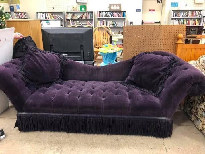 My therapist keeps telling me to “create spaces that feel like mine.” So there I was, in the fluorescent light of a thrift store, having feelings about a purple couch.