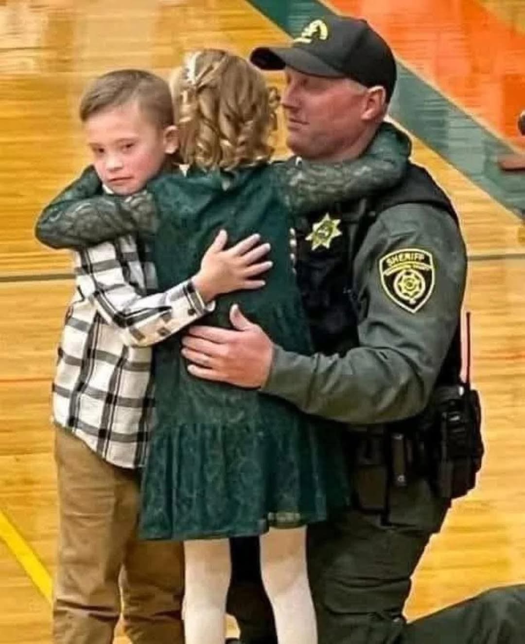 Dep. Gregg, stopped what he was doing and went over to try to make her smile. Next thing, you see was him walking her to the front with her “prince”. She stood there and just hugged on to Terry. And, he just kneeled there, patting her back. Making her feel safe and making sure she didn’t miss her special night.