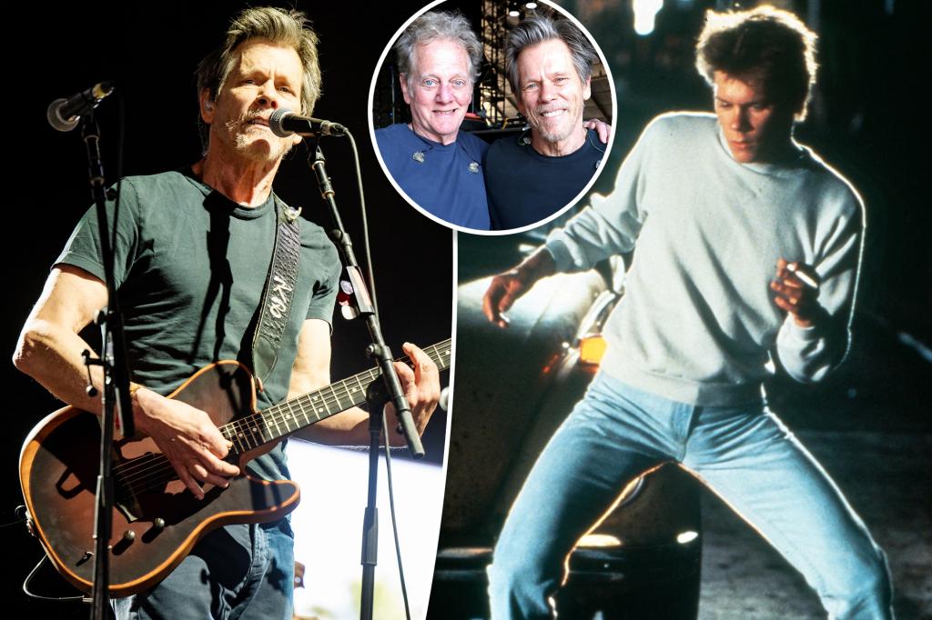 Kevin Bacon, 66, performed the song “Footloose” by Kenny Loggins at the Stagecoach Festival alongside his brother, Michael Bacon.