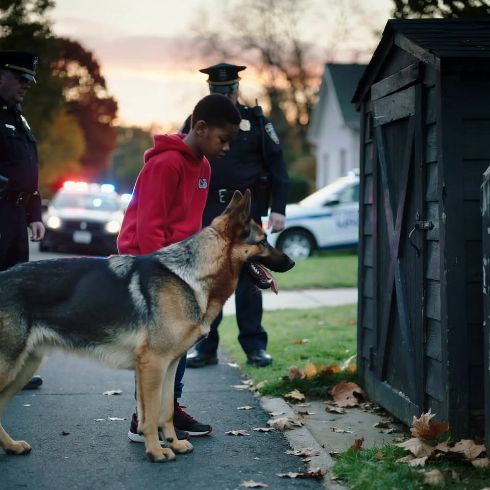 A little Black boy, no older than seven, stood beside a K-9 unit, trembling but silent.