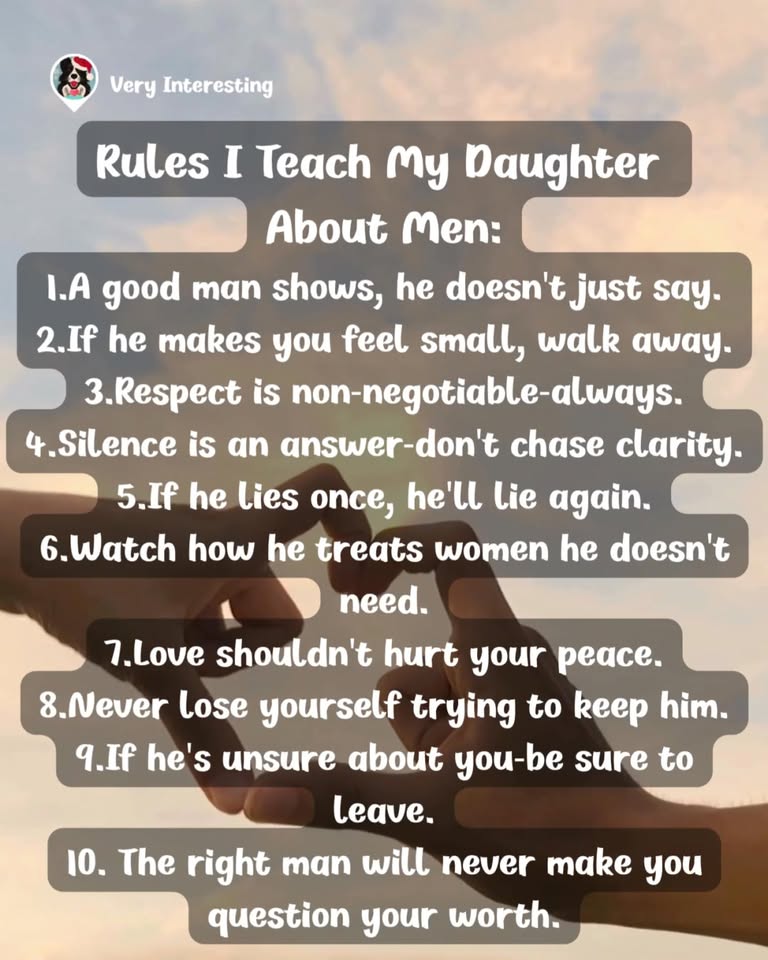 Rules I Teach My Daughter About Men 👩👧💖 Respect is key ✨, love shouldn’t hurt 💔, trust actions 💪 & never settle for less 🌹🚫