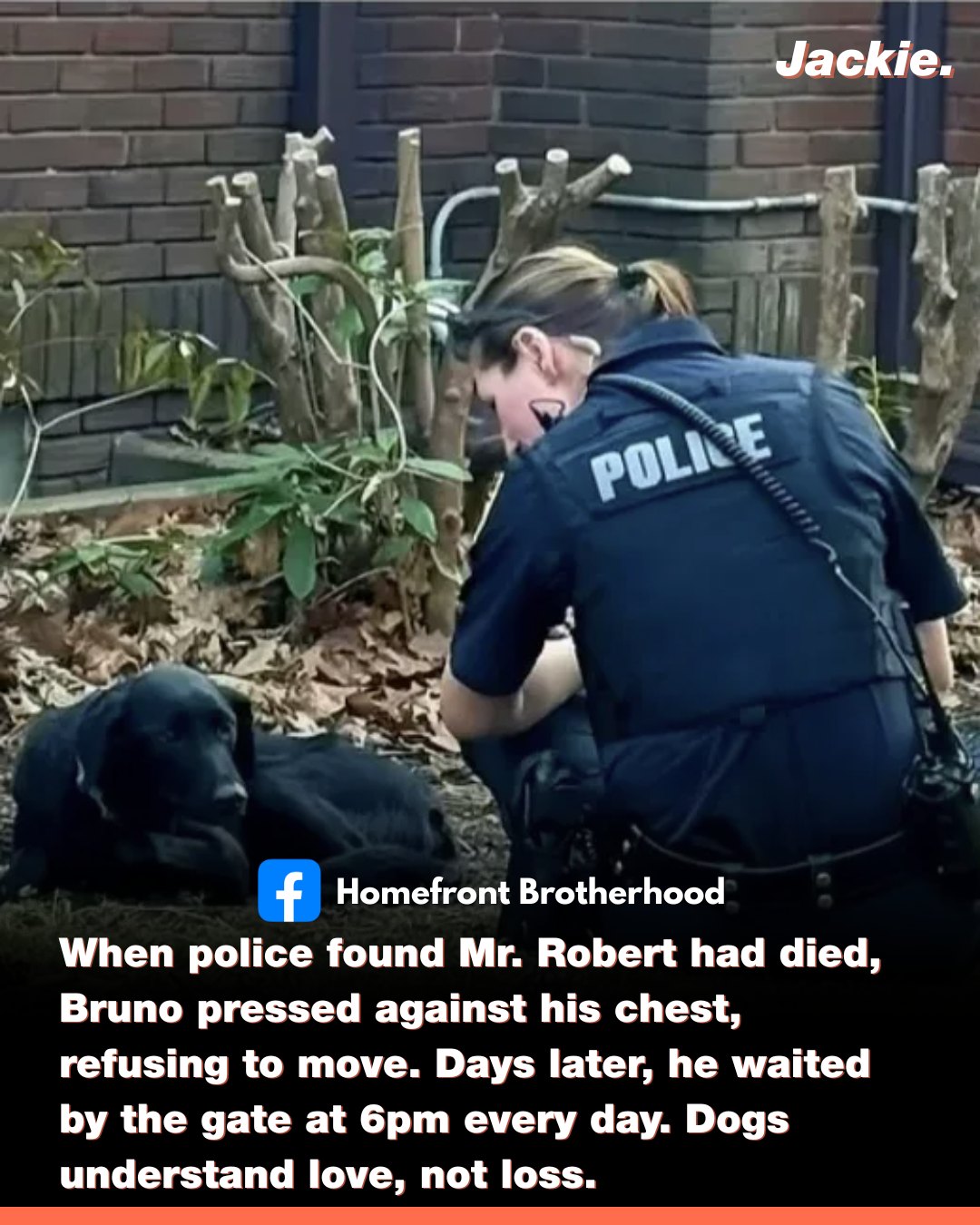 When police found Mr. Robert had passed away from heart failure, Bruno lay pressed against his chest, refusing to move. When officers tried to help, Bruno growled and trembled, guarding his master.