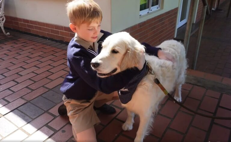 Sunny serves as the school’s dedicated service dog, offering quiet reassurance as the boys navigate their busy school days.
